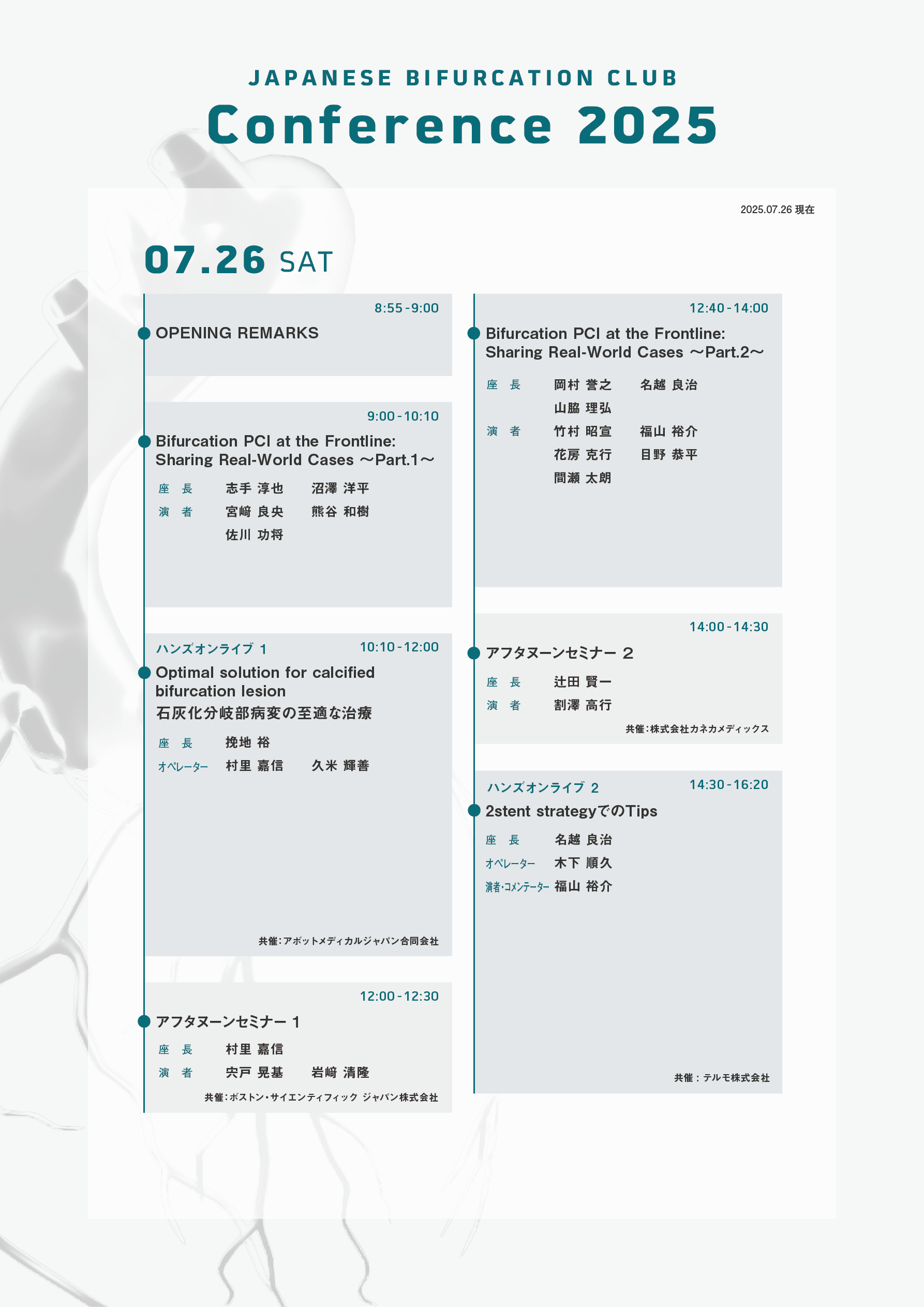 分岐部病変治療の最前線を知り、コンセンサスと革新の狭間で最良の治療法を追求することが、患者さんのアウトカム向上につながると信じています。JBC 2025が、皆様にとって有意義な学びと新たな発見の場となることを願い、多くの皆様のご参加を心よりお待ちしております。